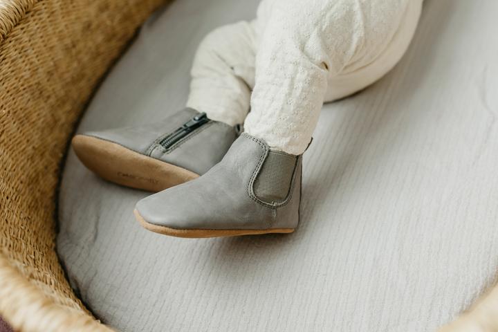 These gender neutral boots are Inspired by the classic chelsea style with a modern twist. Hand made from top-level Waxed Genuine Leather. They come with an Elastic band on the outer side, and a Zip on the inner side, making them easy to put on and take off. All Consciously Baby soft soles are designed to allow for unrestrained movement, so your little one can move around with ease.