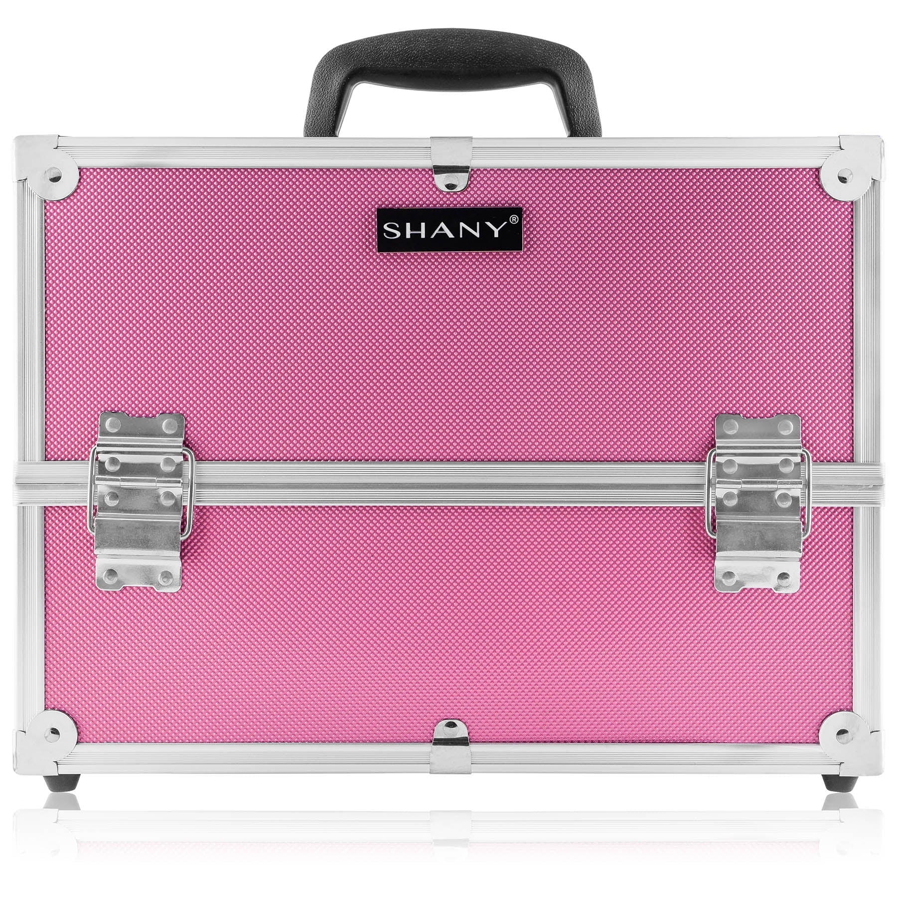 This elegant, aluminum case is made of high quality material for long lasting with durable matte aluminum. Unlike other brands SHANY have used aluminum on the handle, as well as the bottom of the case to ensure a long life of the item. Trays are made of plastic with adjustable dividers, which can be adjusted to almost 20" and you can fit your biggest brushes in there as well. The light weight makeup train case, features a durable design made of ABS plastic and premium quality. Designed for professional makeup artists. Adjustable grids offer an easy storage, while the lock and key and shoulder strap give added protection and easy handling. The SHANY train case is one of a kind in its class as it offers 1.5 more space for tools and accessories in Medium size class train cases. Compare to other brand, SHANY train cases are high quality, affordable and long lasting. all SHANY item come with a 30 days money back guaranteed.