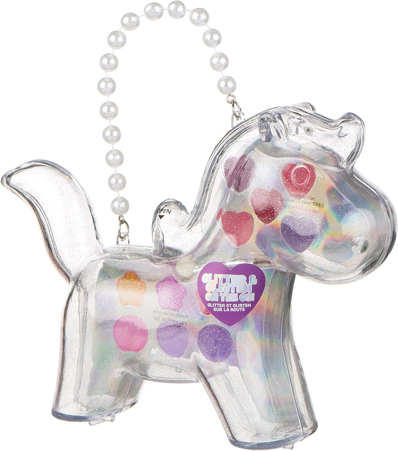 Glitter & Glisten On The Go - This unicorn makeup palette for girls comes in a convenient unicorn-shaped carrying case with a beaded pearl handle, so you can take your beauty routine with you wherever you go!ith a beaded pearl handle; take this cosmetic case with you wherever you go