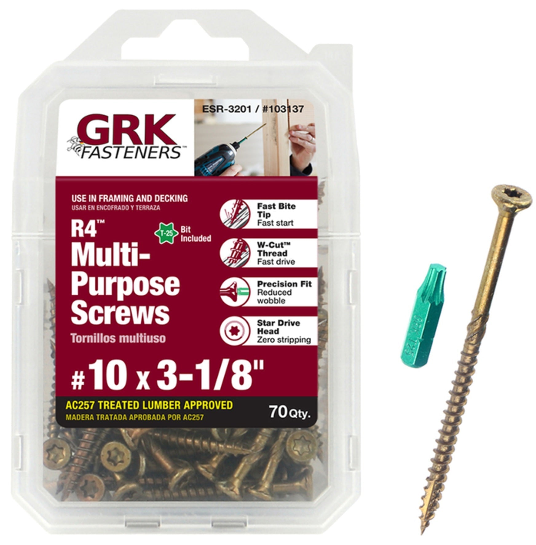 - Precision Fit between R4 Multi-Purpose screws and GRK bits reduces wobble and improves productivity
