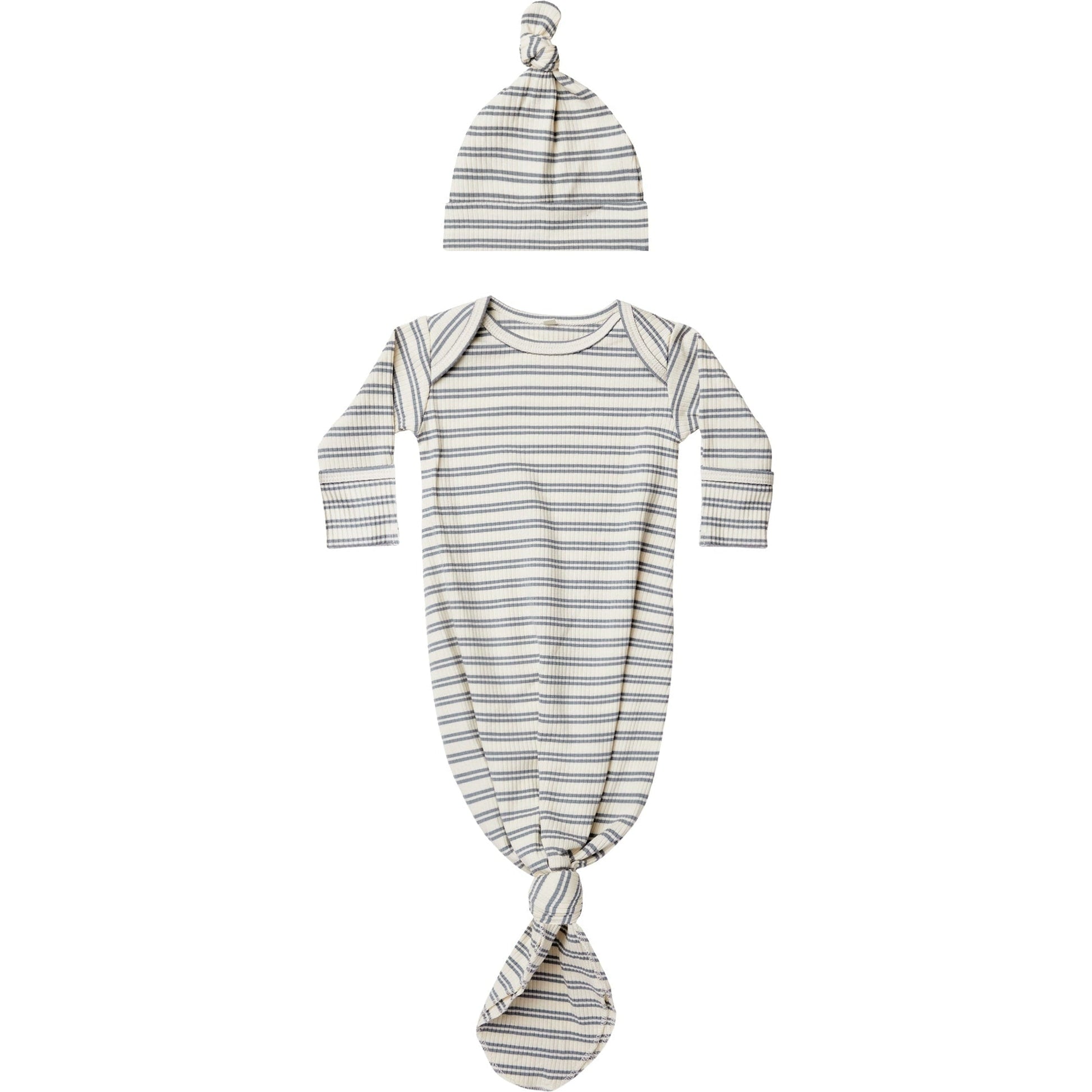 Quincy Mae Knotted Baby Gown & Hat Set | Ocean Stripe