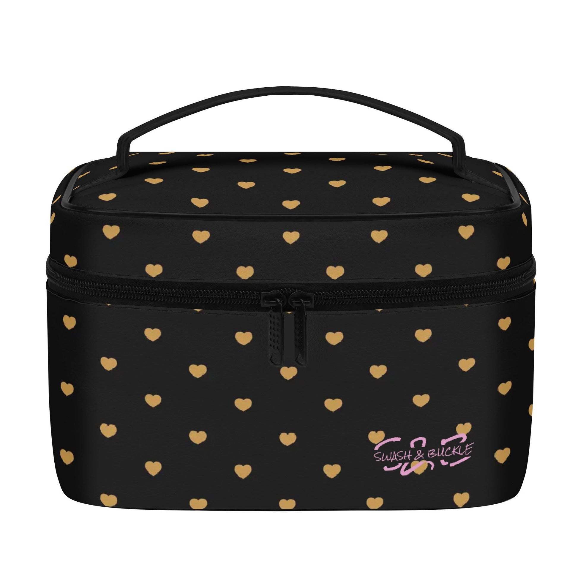 The S&B Makeup Bag Little Hearts, is crafted from litchi-grain PU leather, offering durability and elegance. With ample storage, multiple compartments, and makeup brush slots, it keeps your cosmetics organized and tidy. The portable and lightweight design, along with its waterproof and shockproof features, makes it perfect for long-term trips. Perfect for trips and daily use, it offers a large capacity for sorting your cosmetic tools and accessories effortlessly.