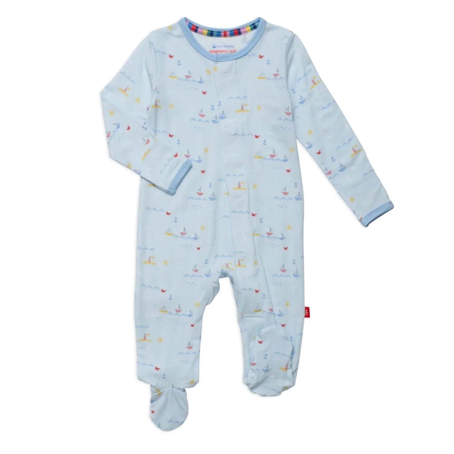 Our parent favorite footie is an everyday (and night) essential with magnetic closures that make dressing easy. magnets are quick, quiet, and a lifesaver for middle-of-the-night changes. eco-friendly TENCEL™ modal is silky soft, breathable, and gentle on sensitive skin. temperature-regulating properties will keep warm in winter, you cool in summer, and oh-so comfortable year round.