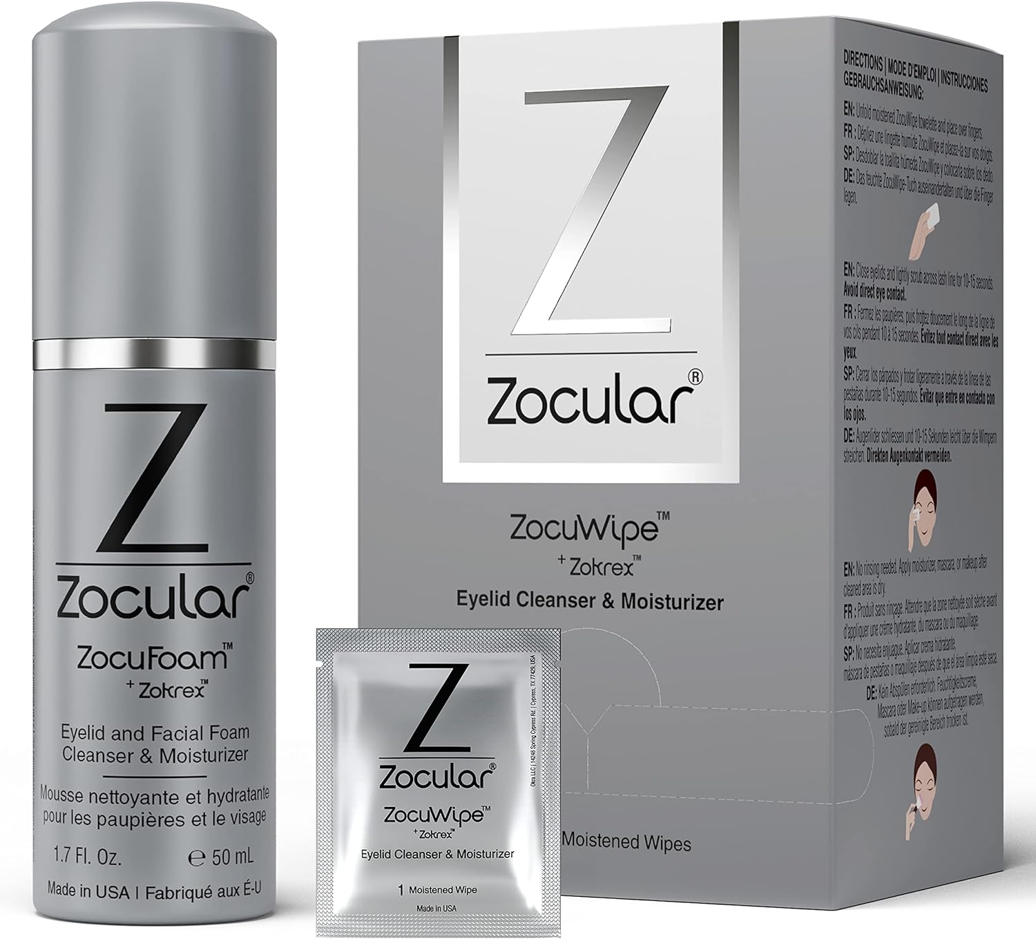 Zocuwipe Eyelid Wipes with Okra Complex - Eyelid Cleanser and Moisturizer Pads 40ct + Zocular ZocuFoam Eyelid Cleanser Bundle